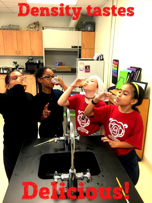 Our Middle School students really enjoyed the science lab on Density this past Friday. Not only did they learn about the different densities of liquids, they got to drink their experiment when they were finished.Mrs. Peacock says "Density taste Delicious!"