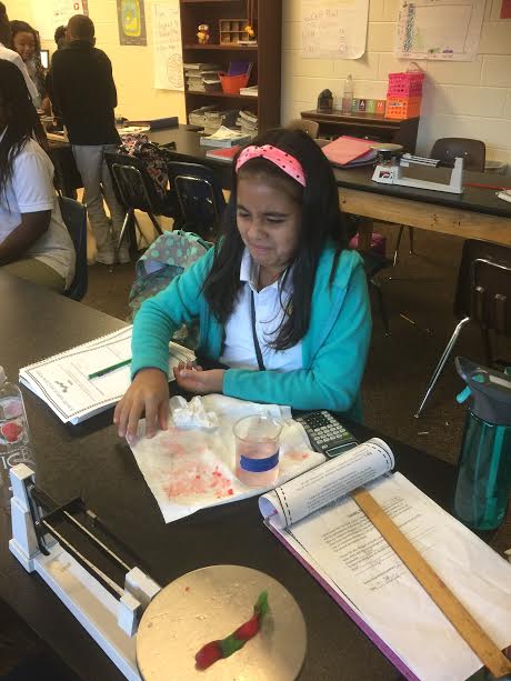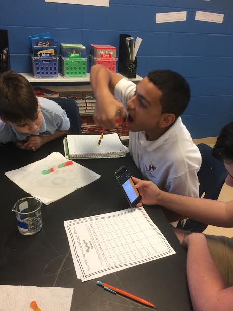 Middle School students had to observe the effects of leaving a gummy worm in different liquids for a period of time in their Gummy Worm Lab last week. It looks like they had a great time checking the results! I am sure they will remember this for a long time.
