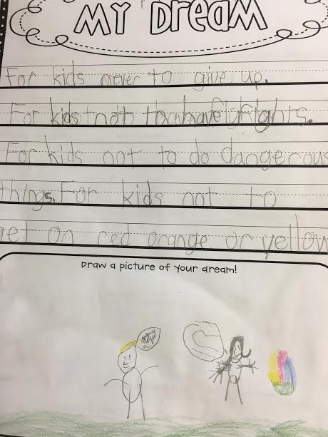 After learning about Dr Martin Luther King, our 2nd grade students wrote their own"I Had a Dream" speech about what they would like for other children or their own class. Here are a couple of examples of what they wrote. Way to go Bears!!!